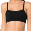 - Three pack of solid full-coverage sport bras featuring spaghetti straps and tag-free labels